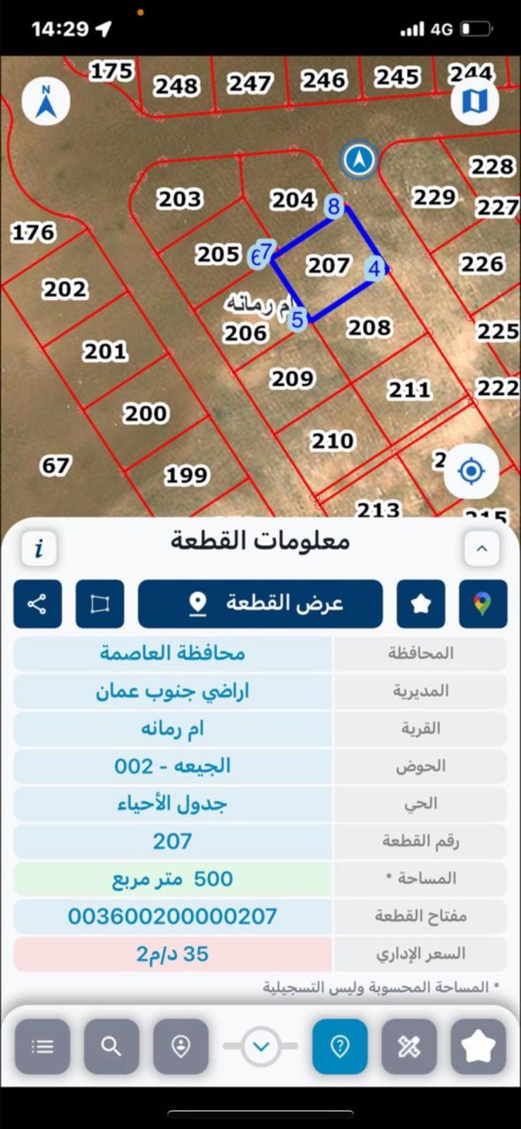 • مساحة الأرض: 500 500