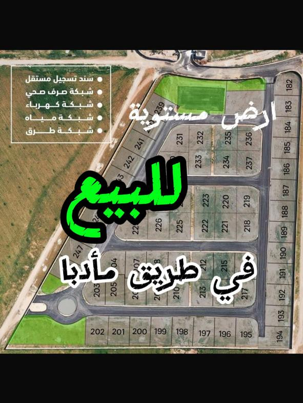 ارض للبيع في طريق مأدبا خلف الفلل الاندلسية ومدخل كمبوند فيكتوريا
