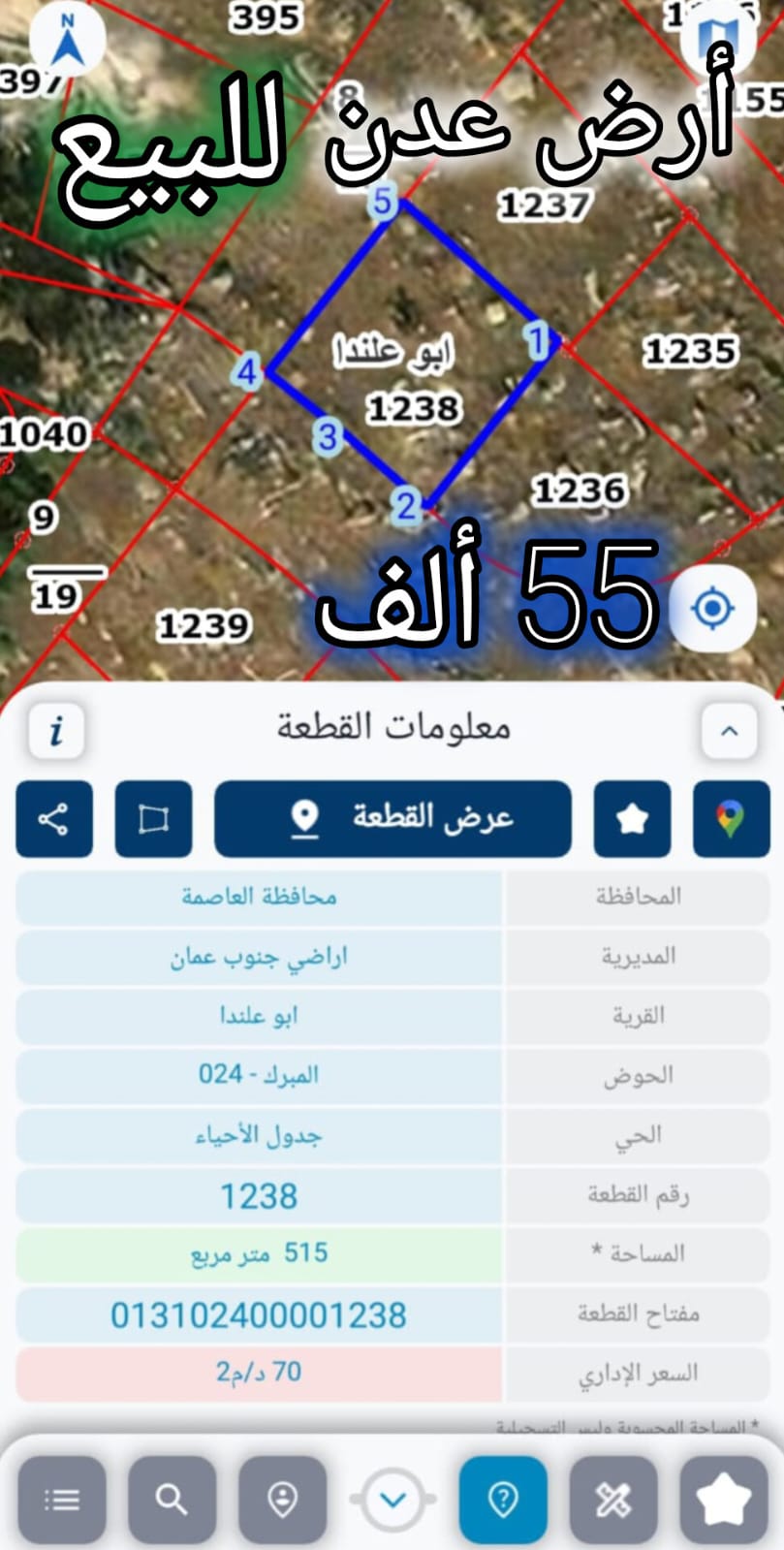 قطعة رقم 1238 بمساحة 515 متر بسعر 55 الف