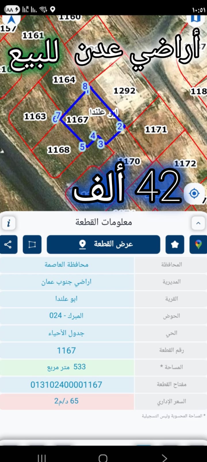قطعة رقم  1167 بمساحة 533 متر بسعر 42 الف